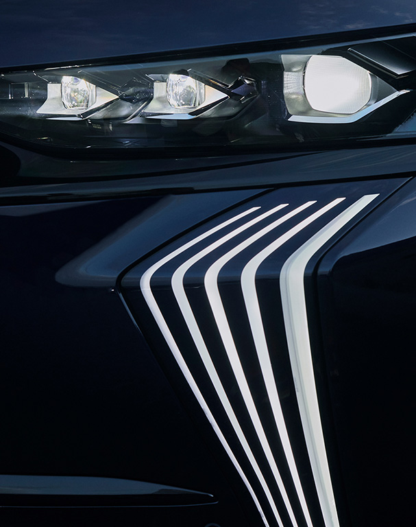Magnifiée par les DS PIXEL LED VISION 3.0 et les DS LIGHT VEIL, la signature lumineuse de DS 7 lui confère un regard incisif et inoubliable. Hautement technologiques, les projecteurs associés à la calandre renforcent l’élégance de la face avant.
