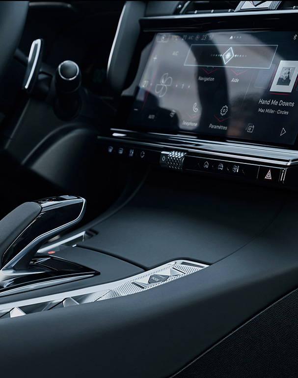 • DS IRIS SYSTEM avec navigation 3D connectée, Android Auto et Apple Carplay sans fil(i) DS IRIS SYSTEM est un écosystème d’information, intuitif, ergonomique et totalement personnalisable, il intègre un assistant personnel avec écran tactile et une reconnaissance vocale avancée.