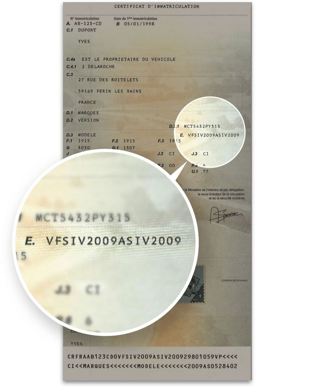 En utilisant l’outil de vérification de votre VIN (numéro de série) ci-dessous, vous pourrez facilement savoir si votre véhicule est concerné par cette campagne, s’il a déjà fait l’objet d’une campagne de rappel ou si il le sera prochainement. Vous trouverez votre VIN sur le certificat d’immatriculation de votre voiture ou sur votre carte verte d’assurance. C’est un code alphanumérique à 17 chiffres ou caractères qui est propre à votre véhicule.
